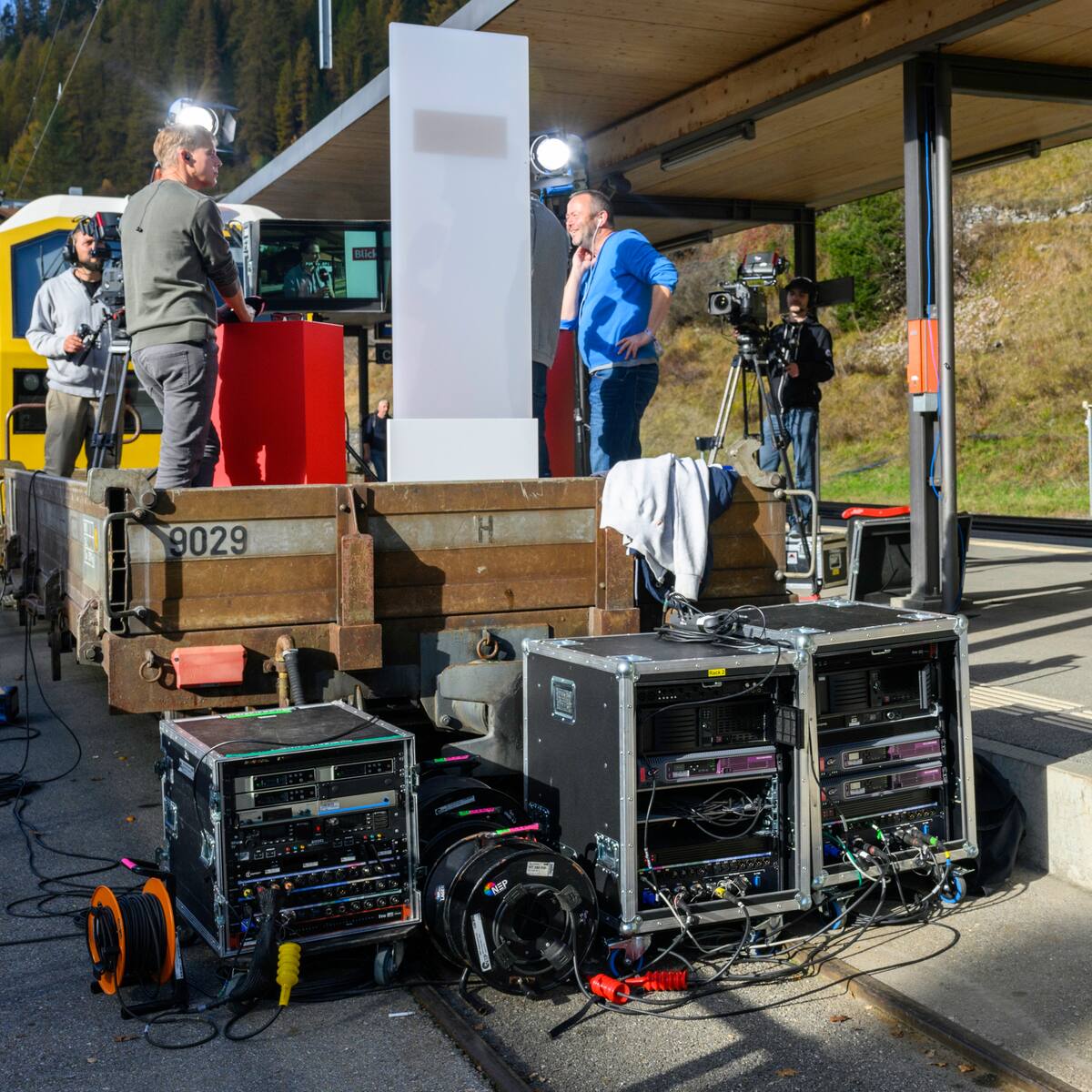 Namhafte Partner mit an Bord Back 06292022 Anlässlich. Am Weltrekord-Tag verkehren 65 Extrazüge. Die 100 Wagen starten ihren Versuch in Preda und enden in Thusis.